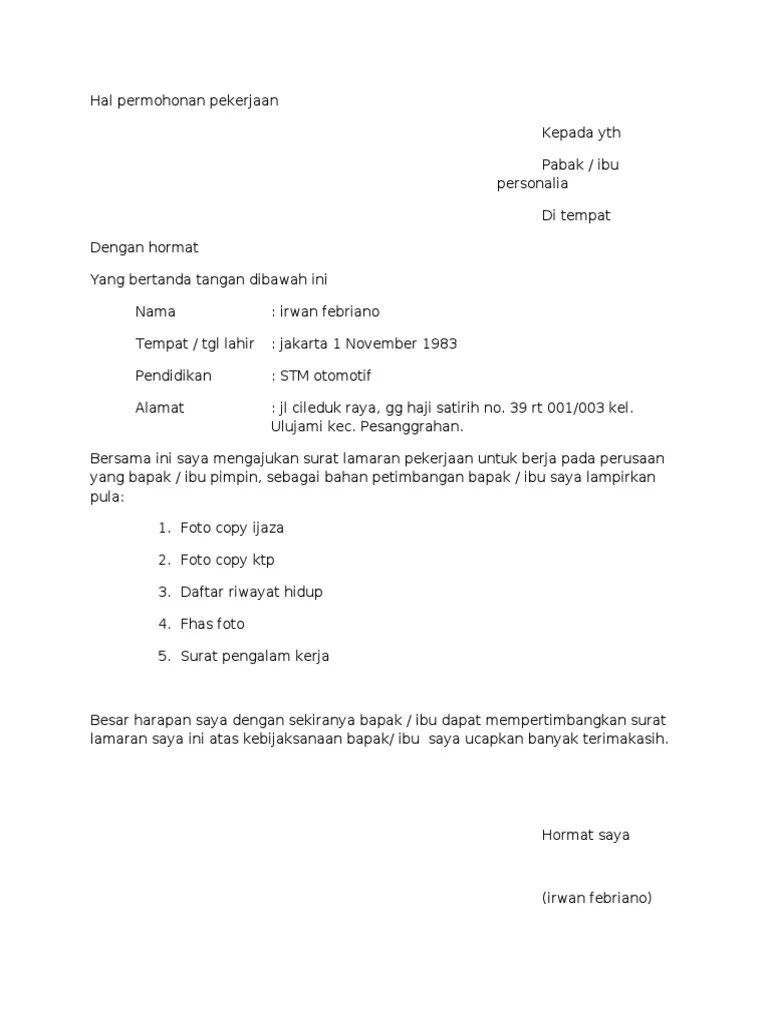 Untuk itu kami mohon masukan dan saran dari anda demi kemajuan blog ini. Masih memiliki perbedaan dengan surat lurus atau full block style yang . Daftar riwayat hidup nantinya akan menjadi lampiran surat oleh karena itu disebut surat lamaran pekerjaan terpisah. Bentuk surat lamaran kerja yang ketiga . Namun bukan berarti jika surat lamaran kerja juga tidak bisa ditulis dalam bentuk lurus penuh.